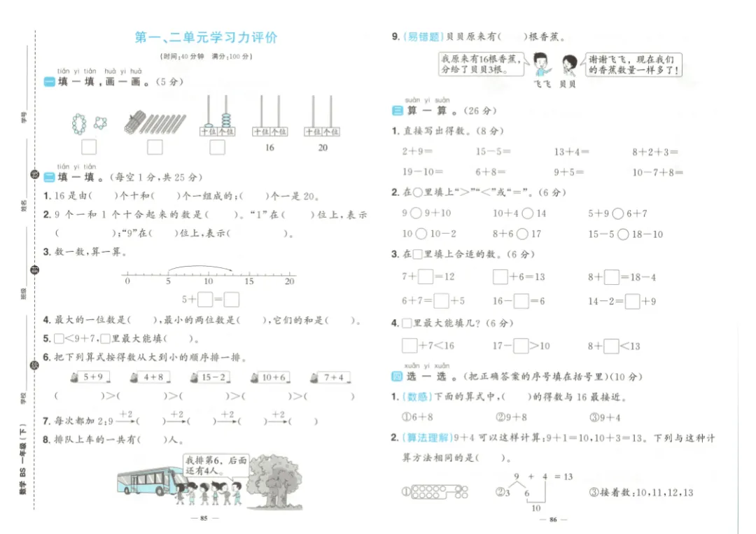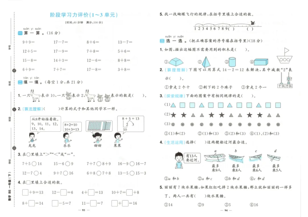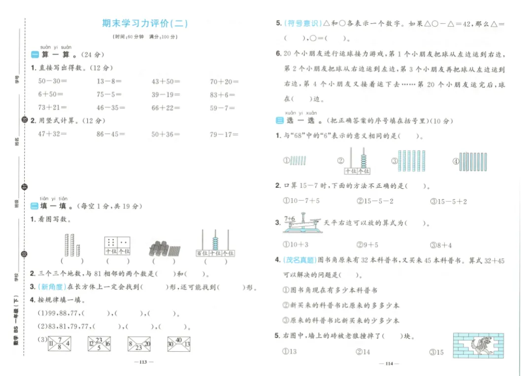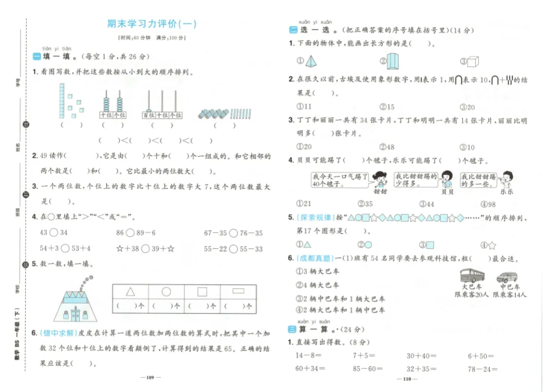 26春一年级下册数学《学习力评价》|电子版可打印