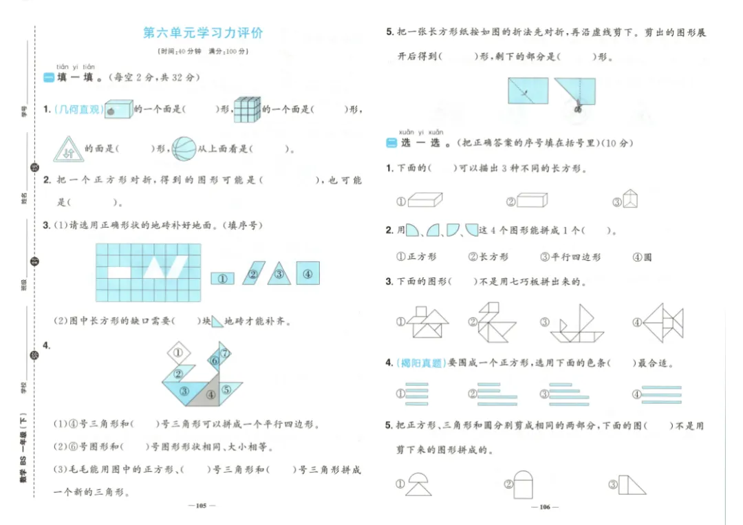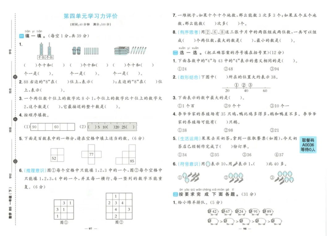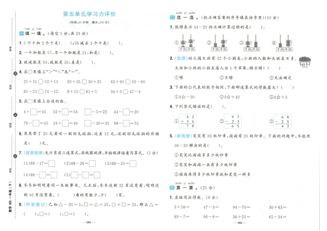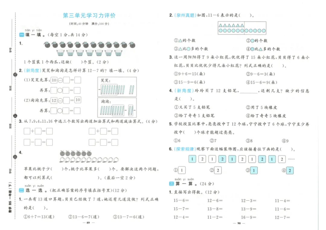 26春一年级下册数学《学习力评价》|电子版可打印