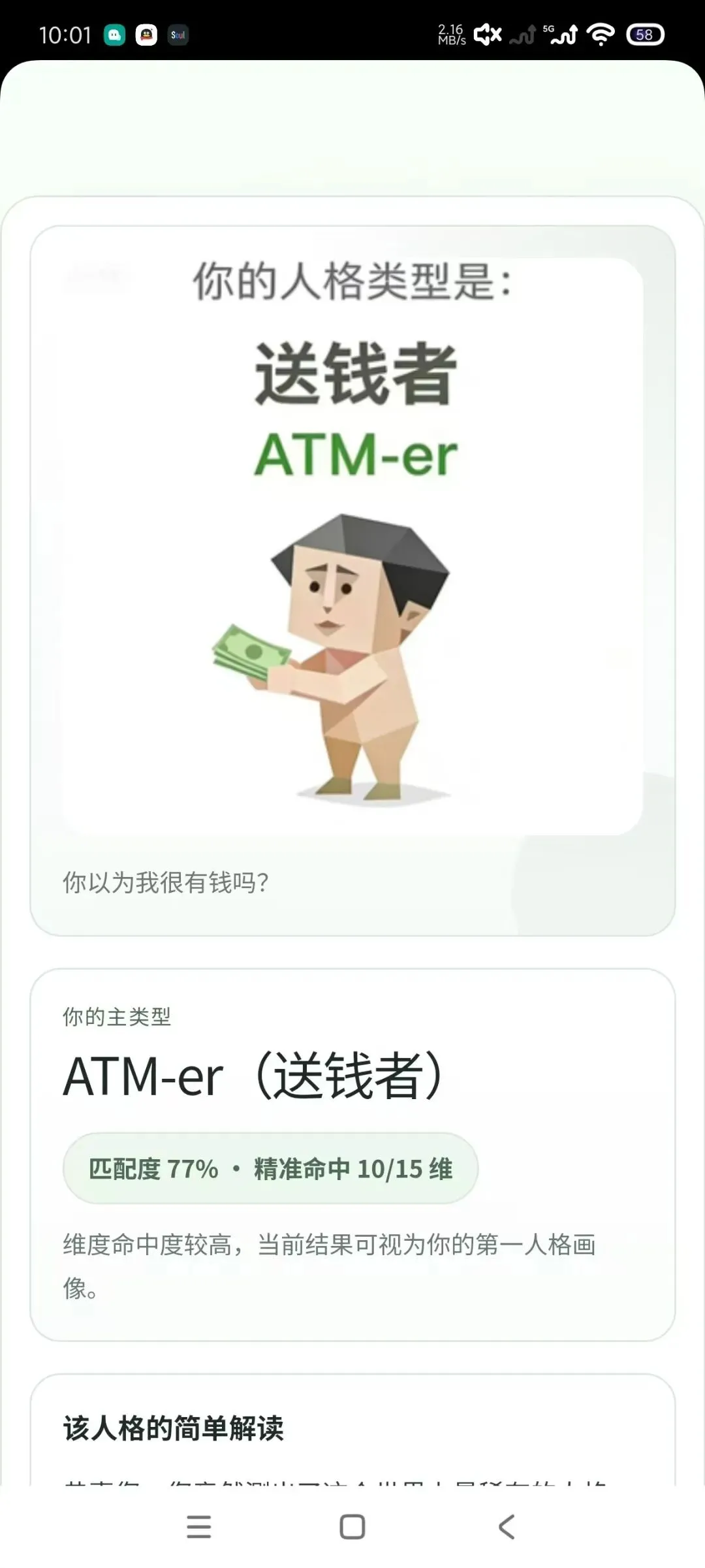 没有华丽的设计,也没有繁琐的操作,主要是真诚实用:可以做人格测试、查看详细的解读,并且有解压的呆瓜玩法,满足你对自己进行自我探索的愿望。不用费劲去查资料,也不用花钱请人解释一下,更不需要选择复杂的选项了,按照自己的第一反应来作答就可以看清楚自己属于什么类型的人格维度了。