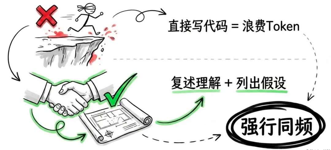 ❌ 错误做法:“帮我写个登录功能。”✅ 正确管理:“接下来这个任务,你先别写代码。用你的话复述一遍你的理解,列出你的所有假设,并指出任何不确定的地方。”