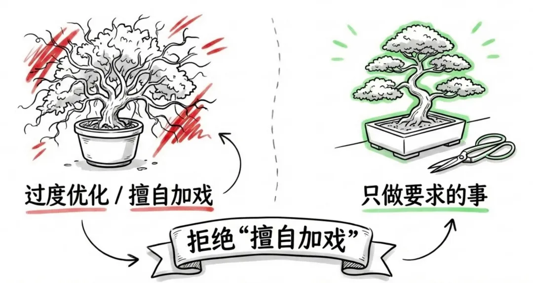 “只做用户明确要求的事,不要进行任何未要求的‘优化’或重构。”