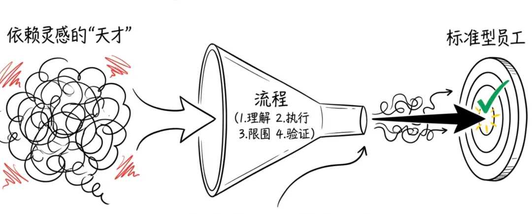 把AI从一个依赖灵感的“天才型选手”,强制改造成一个遵守流程的“标准型员工”。