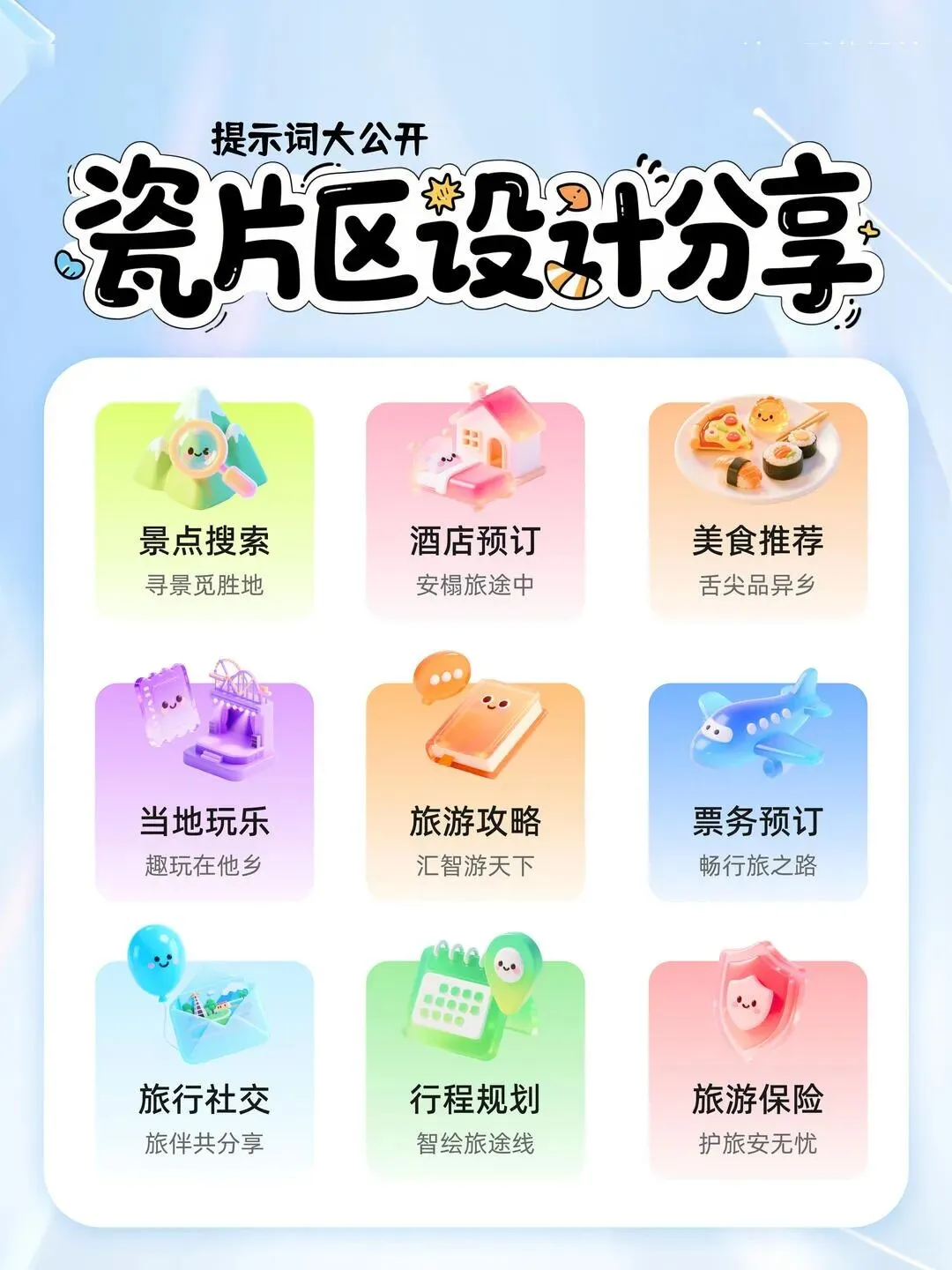 APP|UI设计 瓷片区图标AI 生成 | 附提示词