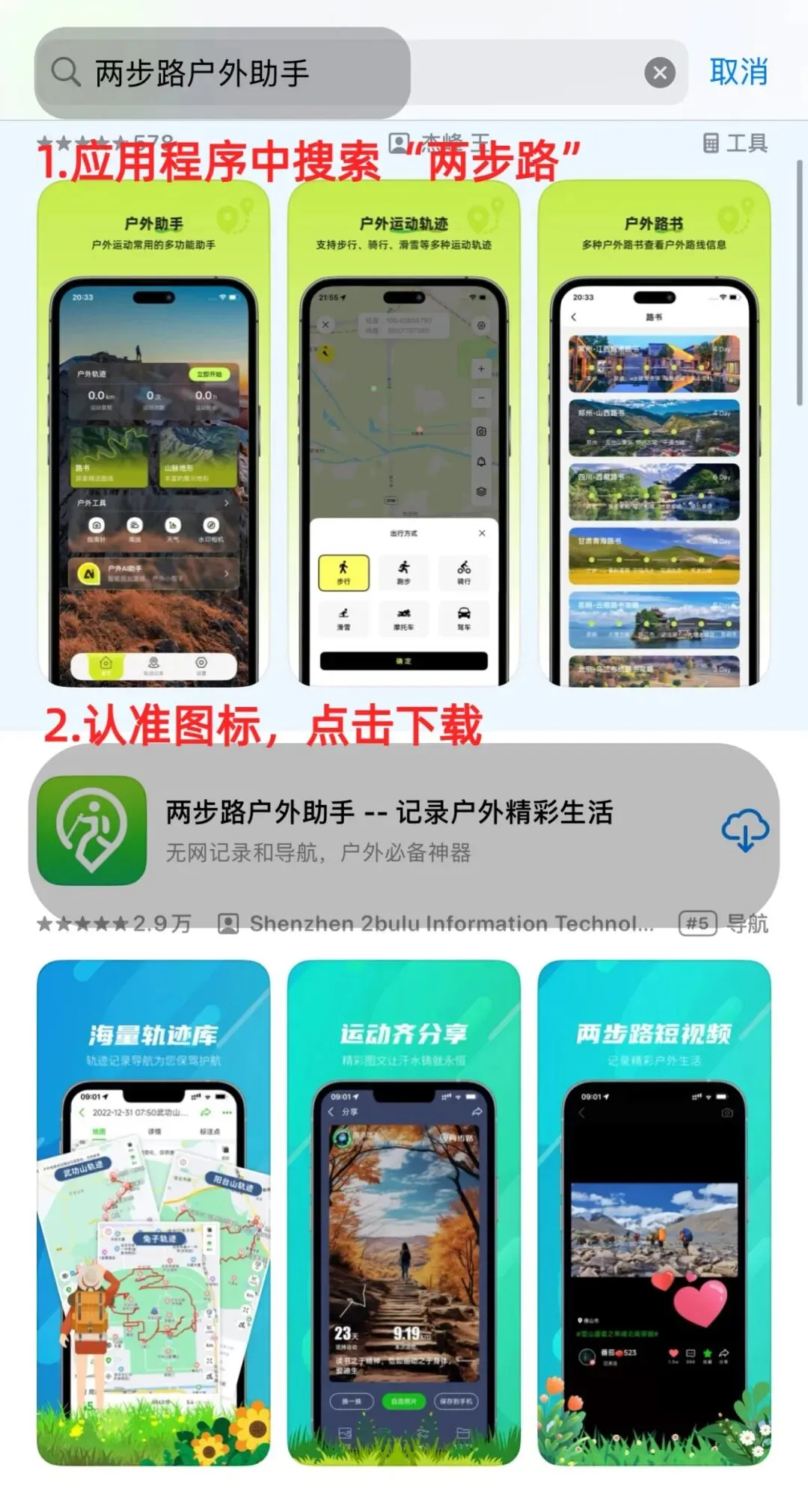 安卓用户可打开应用商店,搜索“两步路户外助手”,点击下载安装,安装完成后打开软件;iOS用户则在App Store搜索同名软件,下载安装即可;