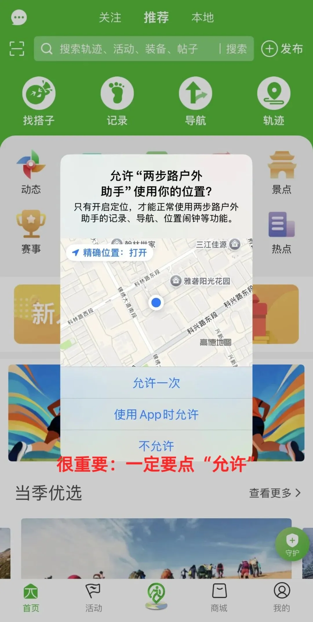 ②一定要开启“位置授权”才能确保导航准确;