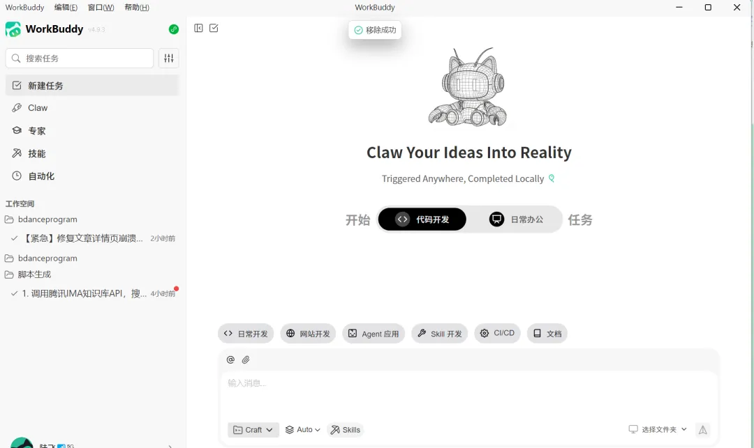 Q:我的工作需要XX功能,能支持吗? WorkBuddy 兼容 OpenClaw 社区技能,90%以上的办公场景都能覆盖。有特殊需求还支持插件开发。