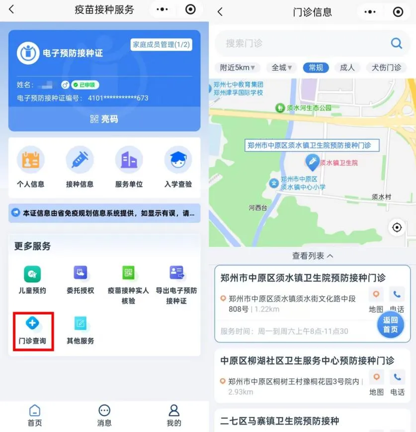 漏打疫苗了?接种完成了?留观结束了?门诊发了新通知?都会实时推送到手机,请留意“消息”界面。