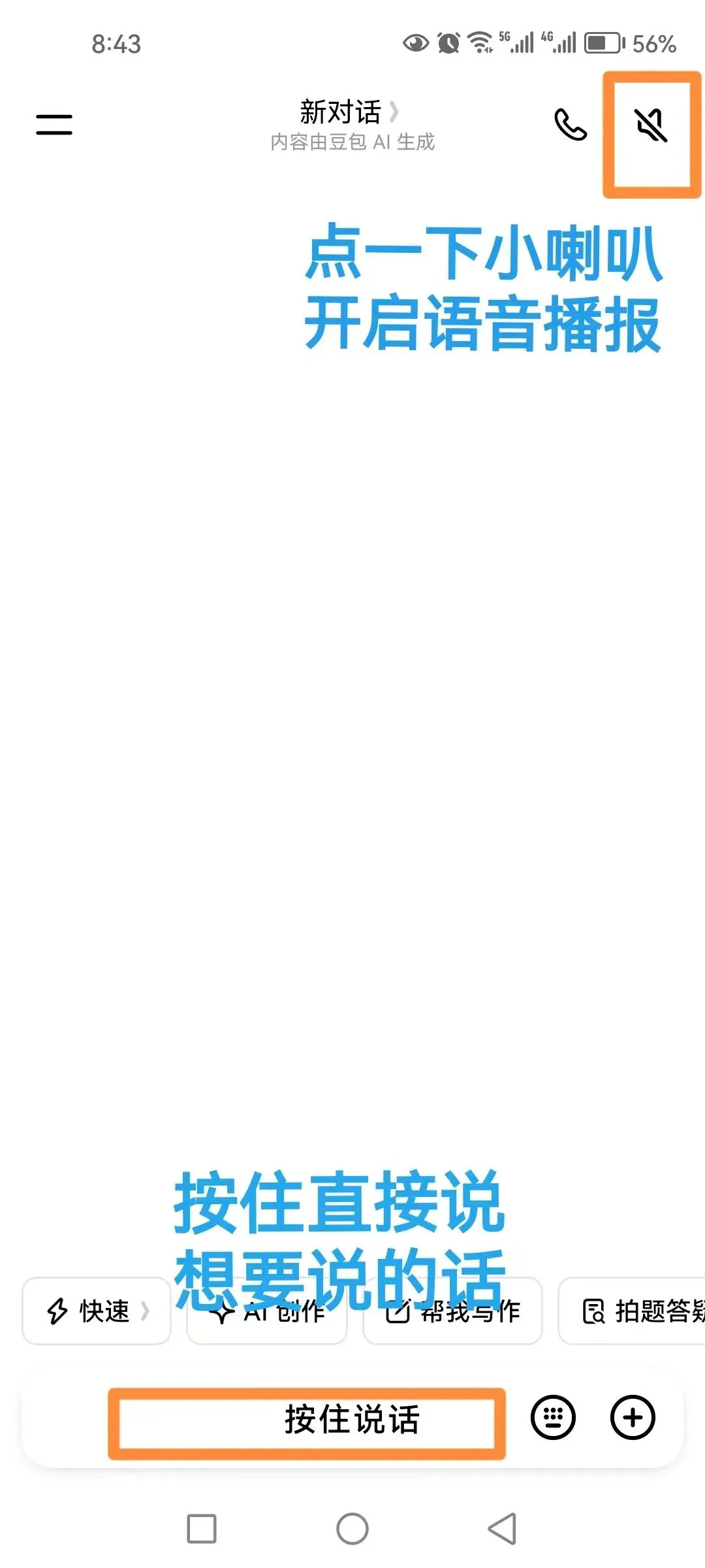 3.点一下麦克风按钮,按住说话,说完松手,它就回答你。