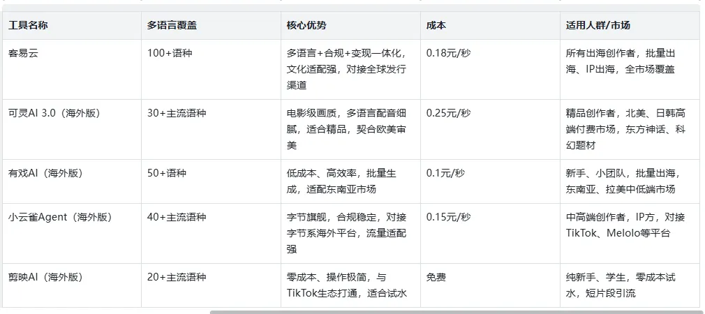 三、2026年AI漫剧出海:多语言工具选型黄金法则(必看)