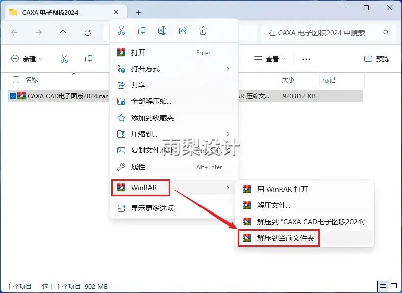 1.右键【下载的安装包】选择【解压当前文件夹】