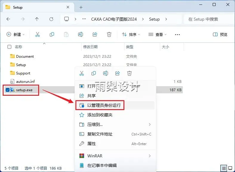 3.右键【setup】选择【以管理员身份运行】