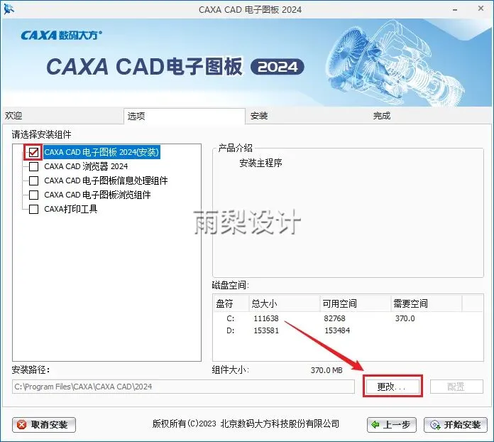 6.勾选【CAXA CAD 电子图板 2024】,点击【更改】