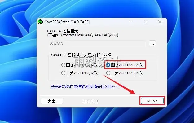 14.选择【图板2024 X64(64位)】,点击【GO】