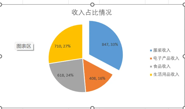 饼状图主要用于展示各部分占整体的比例(如销售额占比、费用构成、分类占比)
