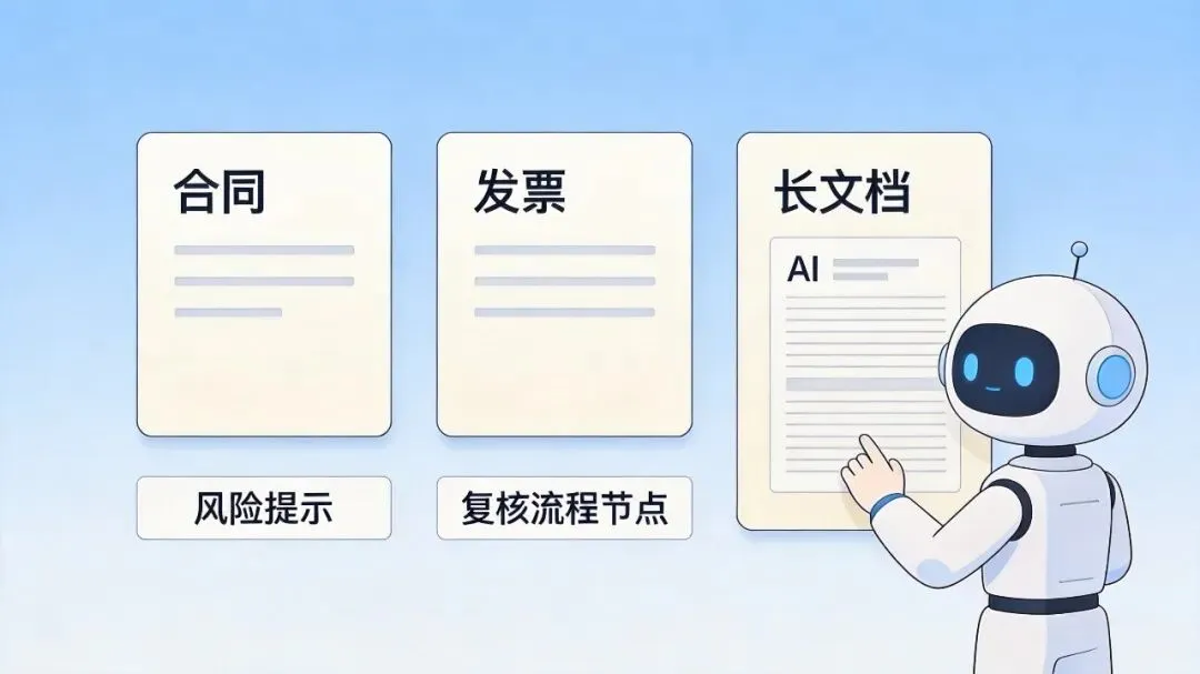 第三类:长文档合规检查。比如制度、报告、标书,先做结构化抽取和风险定位,再交给人工确认。