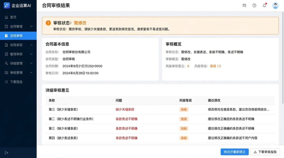 第一类:合同审核。重点看关键条款、责任边界、风险语句,先做“初筛+提示”,不要一步到位做“自动裁决”。