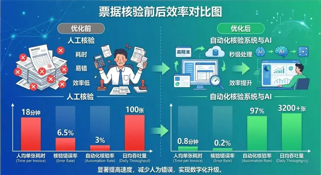 第二类:票据/发票核验。这类场景规则明确,见效快,通常是最容易出成绩的一步。