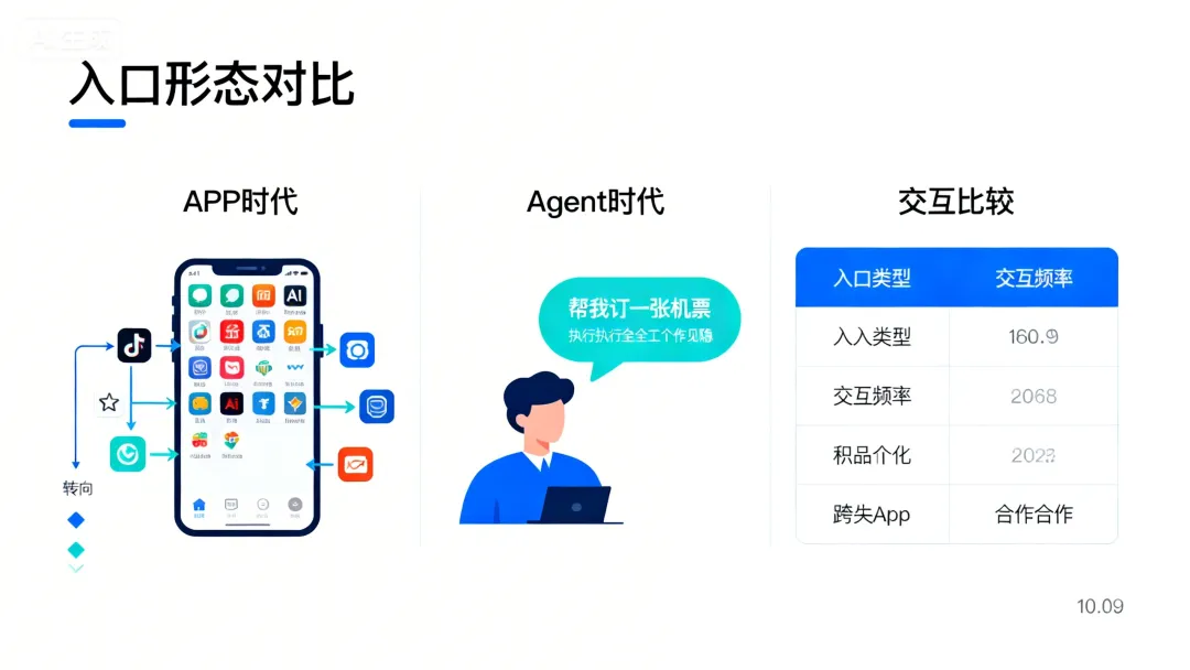 但入口本身并不是目的。我们真正想要的从来不是”打开”这个动作,而是”打车到达”、”买到心仪的衣服”、”看到有趣的视频”这些结果。过去二十年,每一次计算革命,本质上都在重新定义”入口”。而今天,AI Agent 正在发起新一轮洗牌。