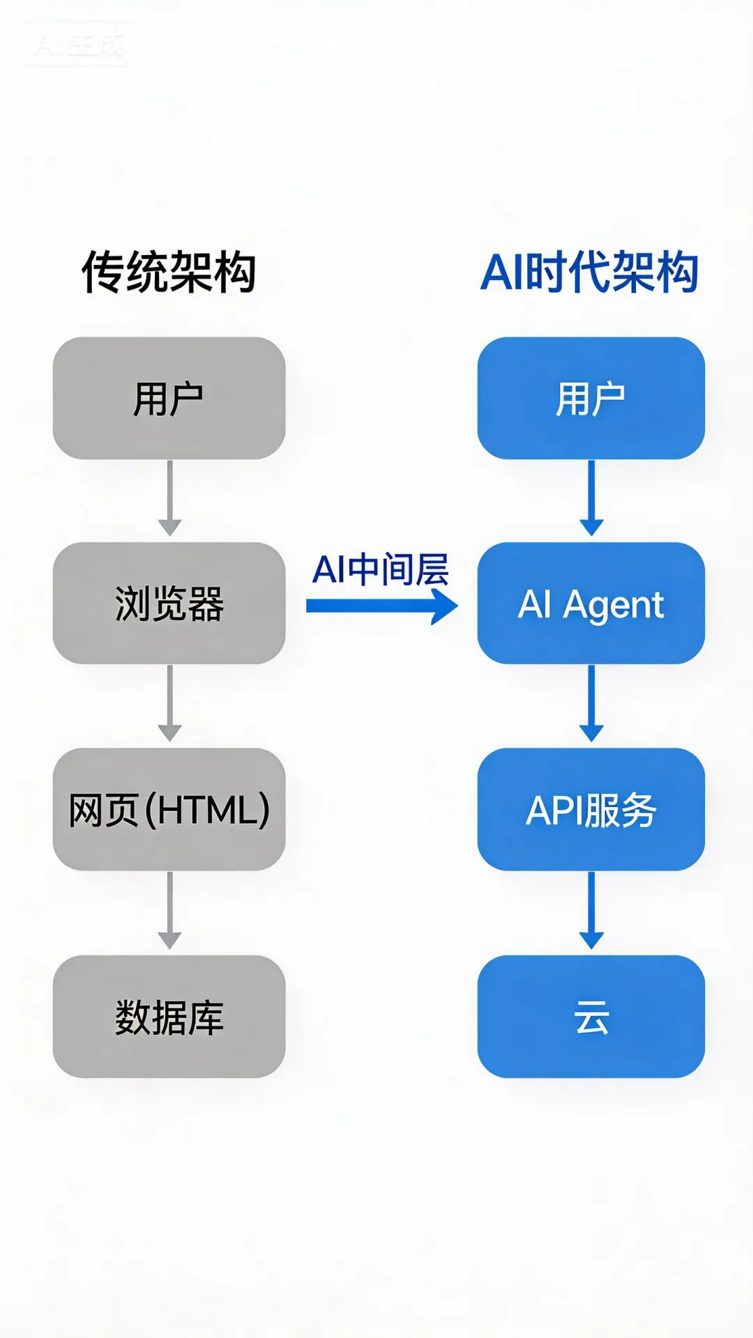 API从”第二公民”变成”第一公民”——Agent不会像人一样浏览网页,它会直接调用后端API。这意味着:每个互联网服务都必须成为”AI友好型”的API服务;文档不只是给人看,还要给AI看(Machine-Readable Documentation)。