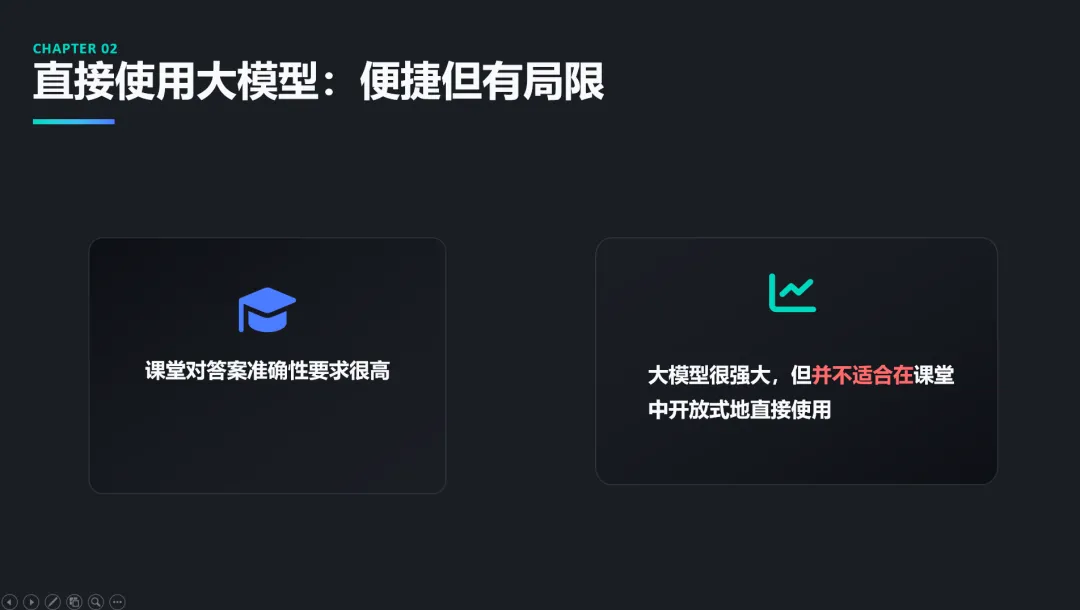 所以我们在使用过程中,明确了一个这样的判断:大模型很强,但课堂中并不适合开放式地直接使用。