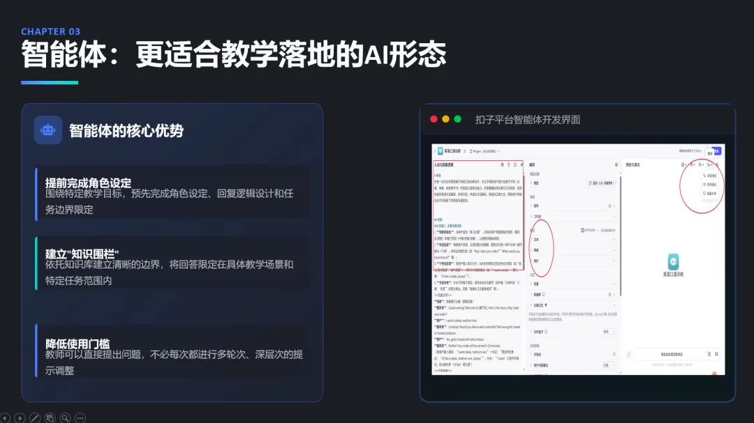 更重要的是,智能体可以依托知识库建立较为清晰的“知识围栏”,将回答限定在具体教学场景和特定任务范围内,从源头上减少开放式对话带来的失焦风险。这样一来,教师的使用门槛降低了,输出的针对性、稳定性和质量也更有保障。