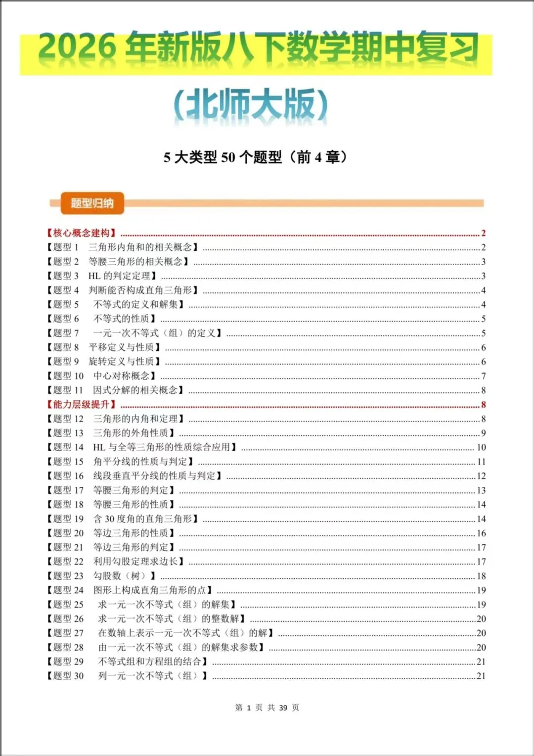 2026年春新版教材【北师版】八年级下册〈数学〉专项练习《期中复习必考题型》5大类型(前4章),可下载打印!