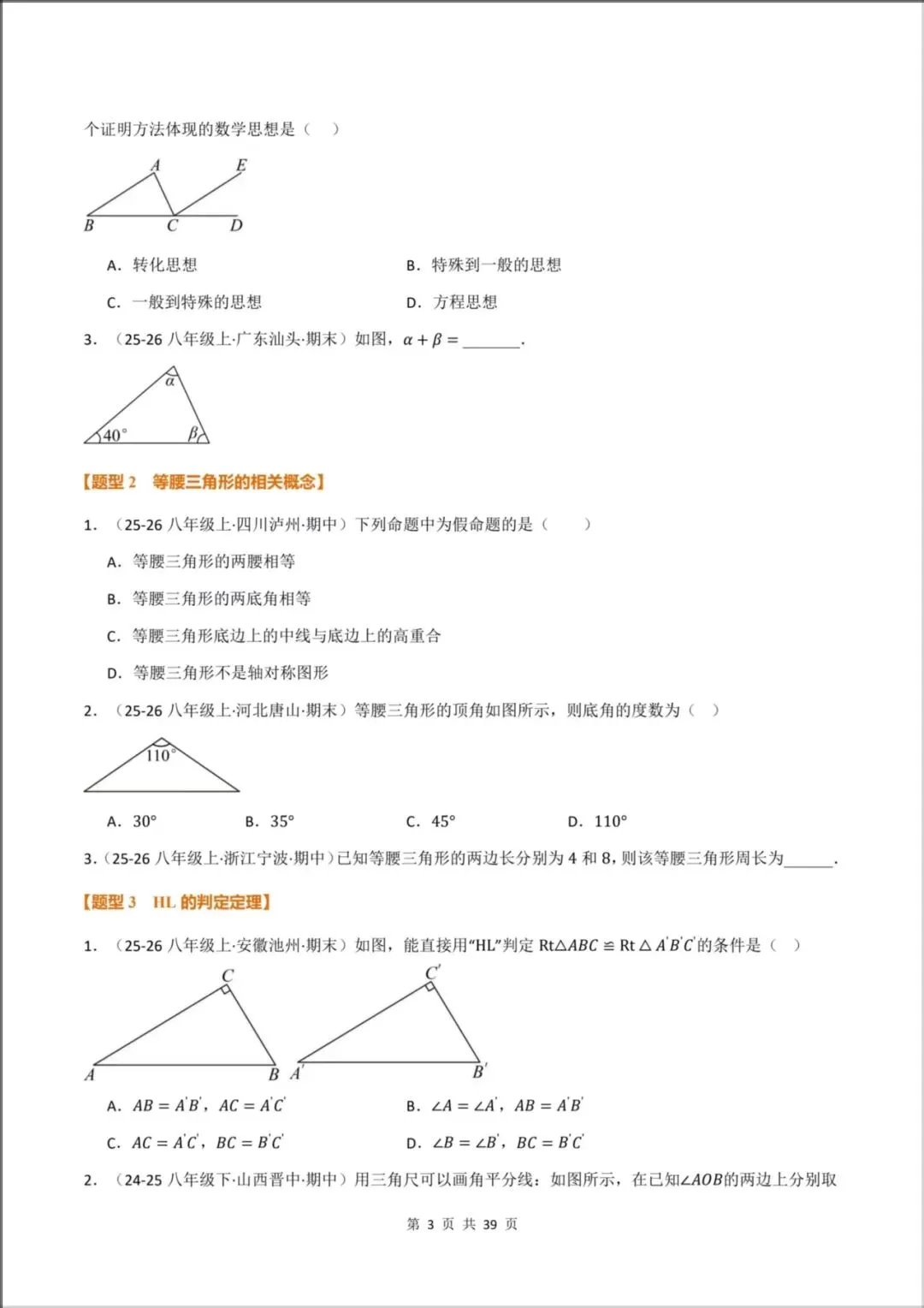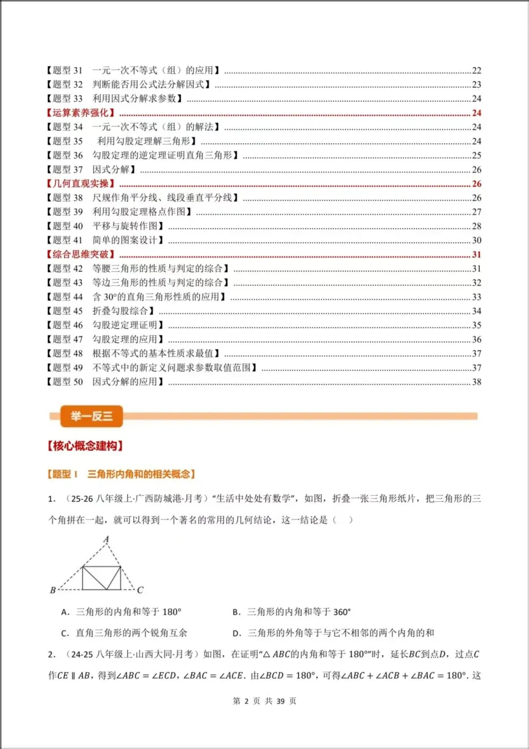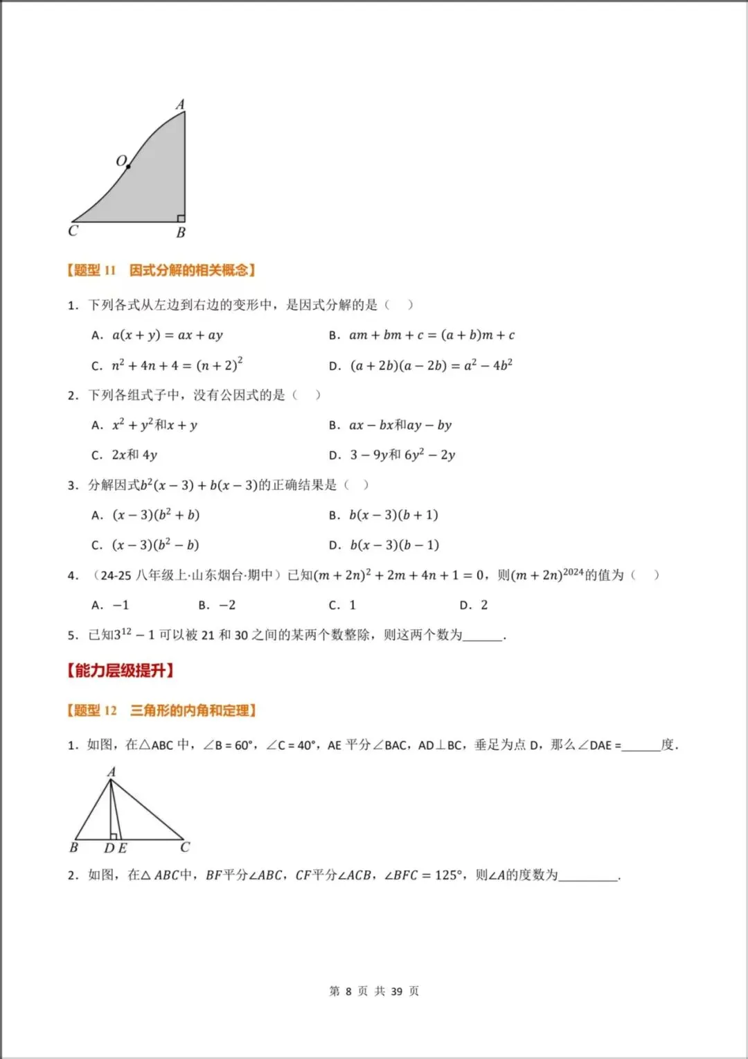 [题型12:三角形的内角和定理]