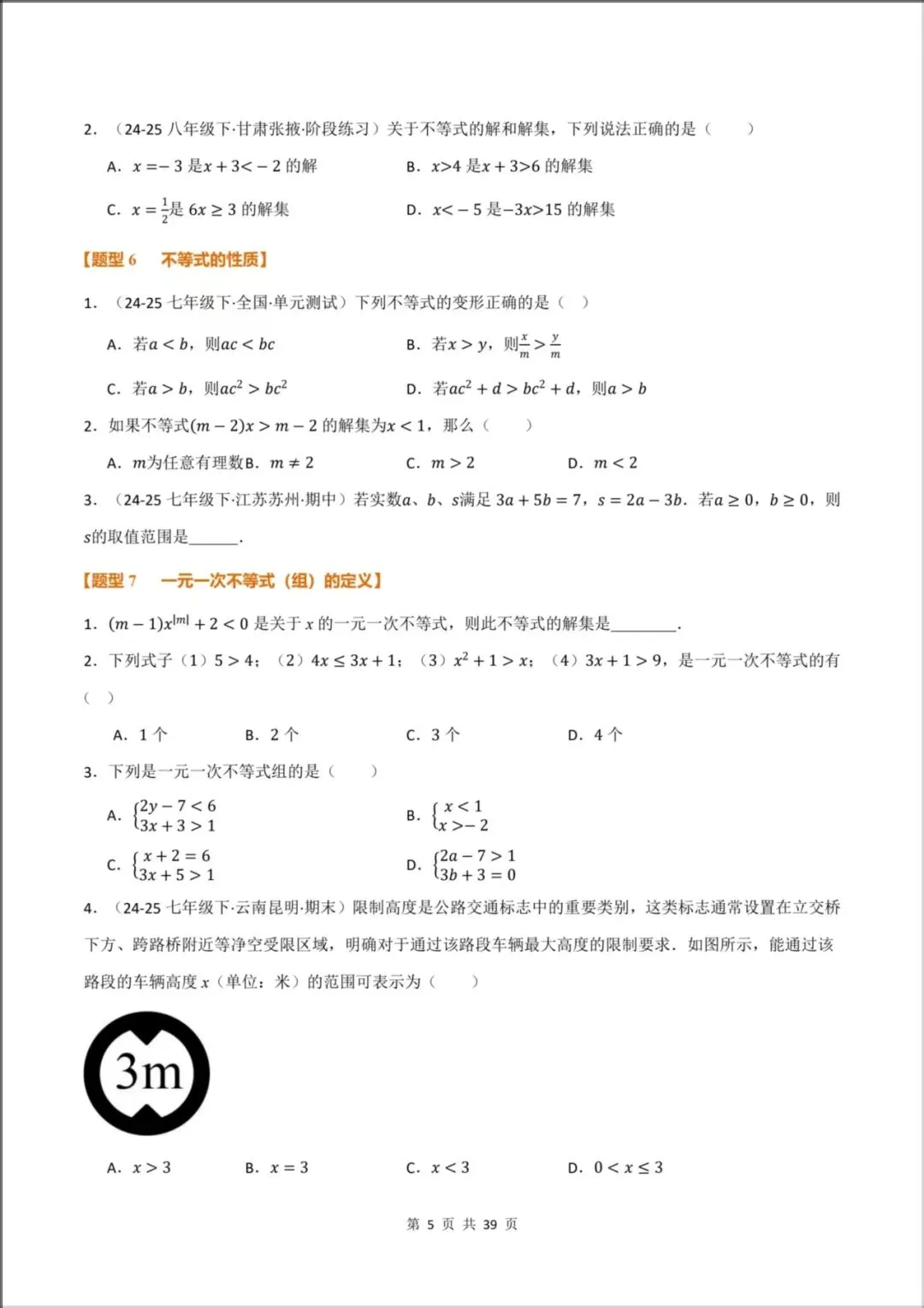 [题型5:不等式的定义和解集]