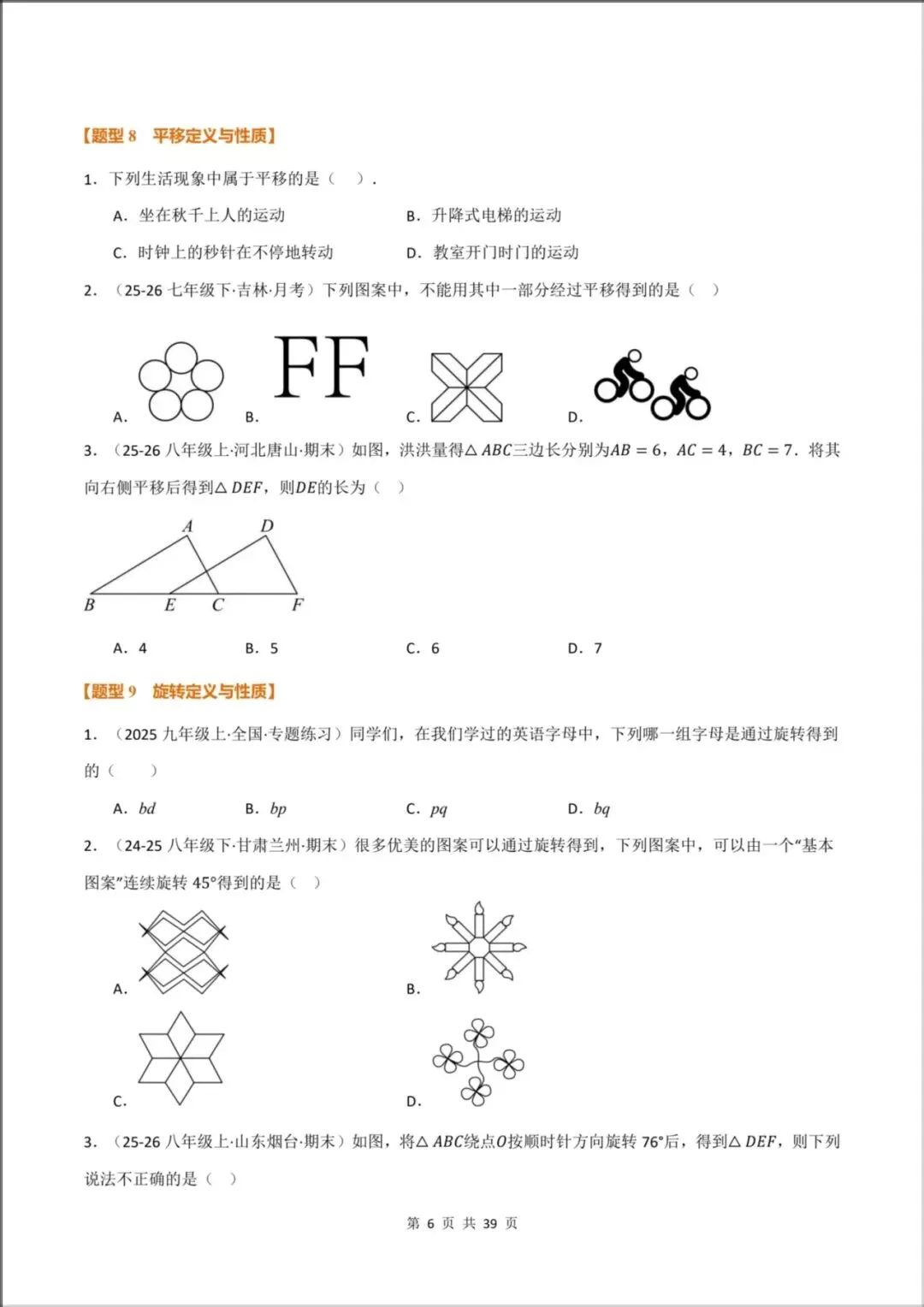 [题型8:平移定义与性质]