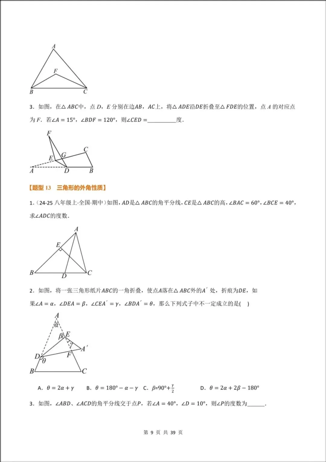 [题型13:三角形的外角性质]