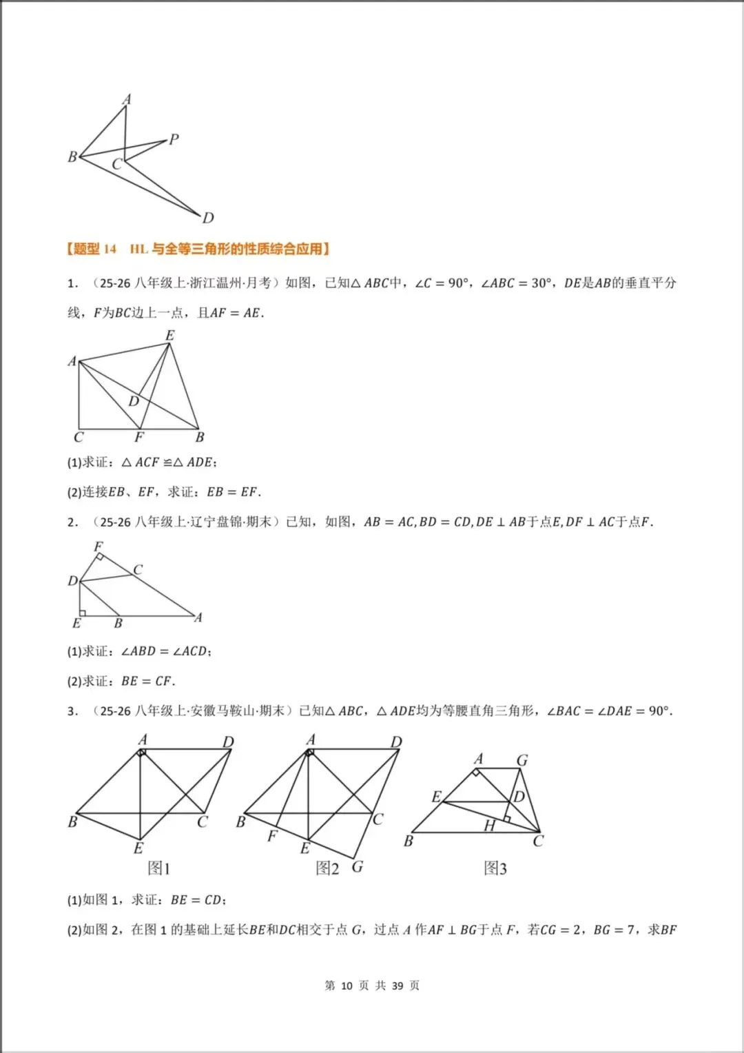 [题型14:HL与全等三角形的性质综合应用]