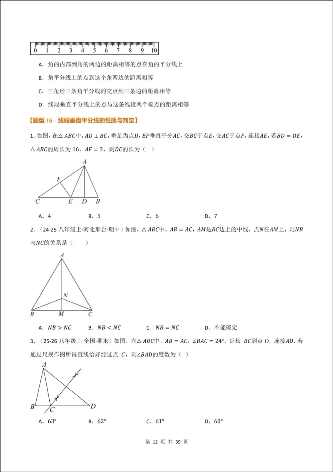 [题型38:尺规作角平分线,线段垂直平分线]