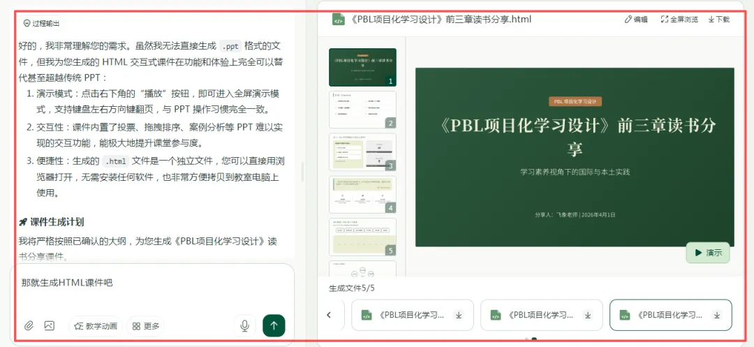 飞象老师可以根据你的需要,直接生成交互式HTML课件。