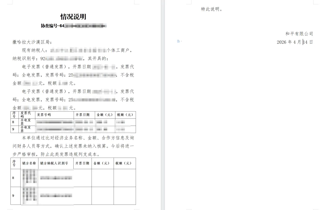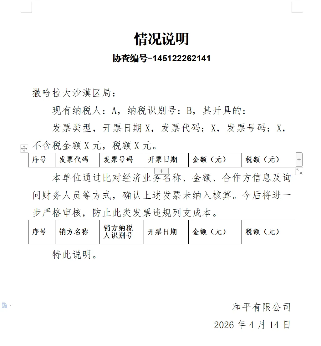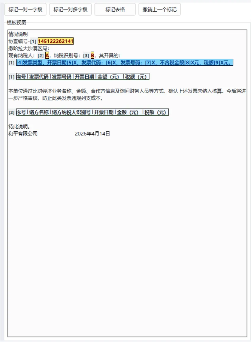 比如生成发票协查函件的回复、供应商的对账单等等