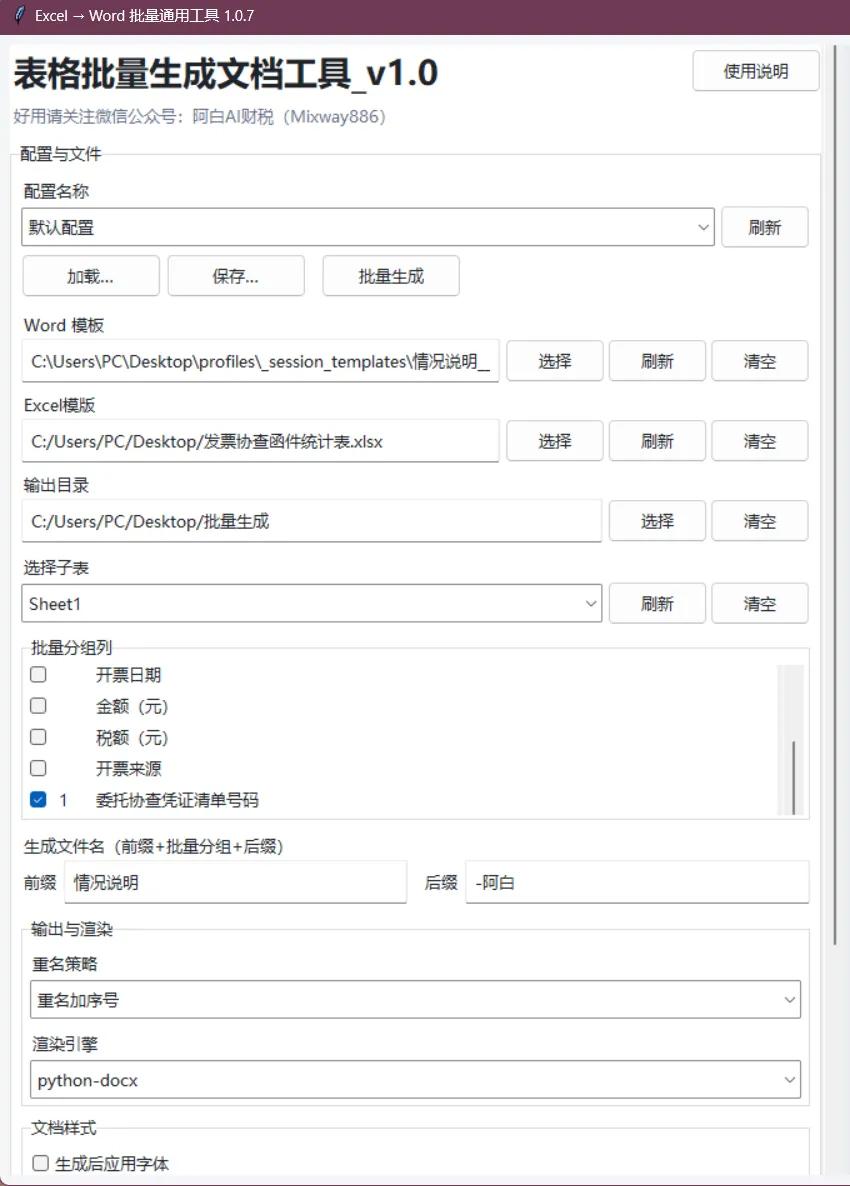 表格批量生成文档工具v_1.0