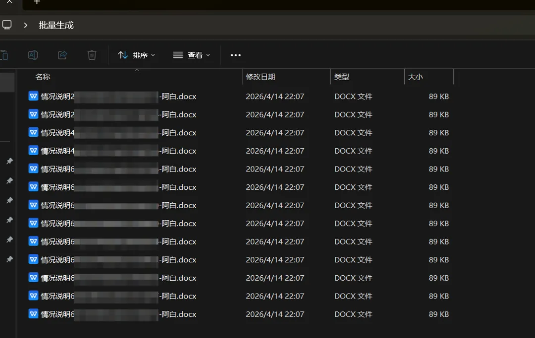 回到选择批量输出的文件夹内,就可以看到批量生成的文档啦