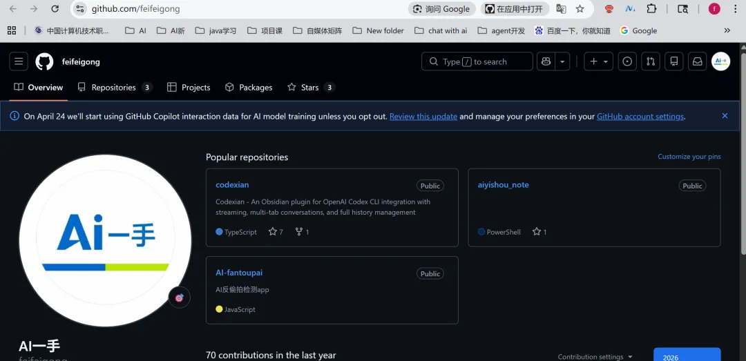 确定好是自己的 github 目录后,就可以看下面的提示词了。