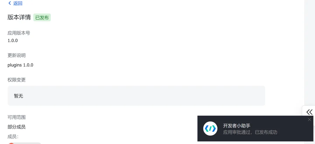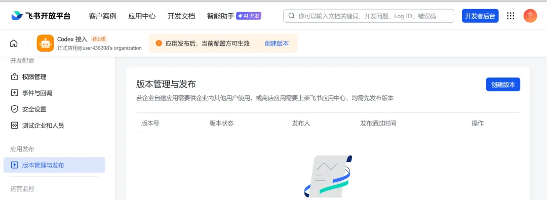 申请完在「版本管理与发布」里发布一个版本,等企业管理员审批。如果你自己就是管理员那就直接过。