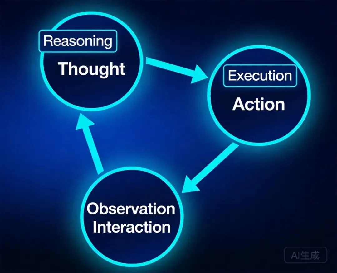 用户请求 → Thought(分析) → Action(执行工具) → Observation(观察结果) → Thought → ...