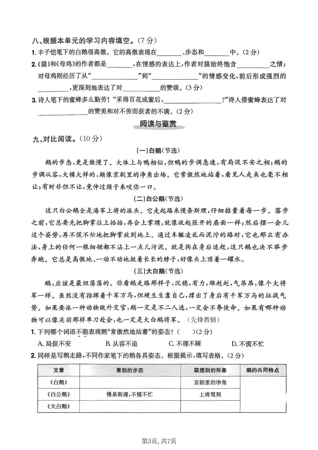 四年级语文下册《第四单元检测卷》3套丨可下载