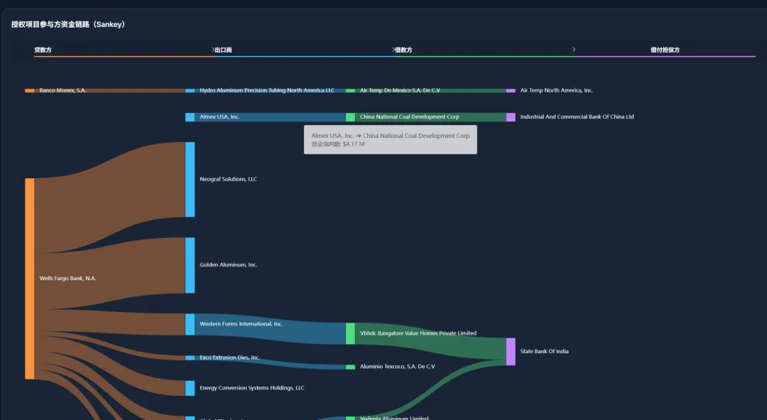 2026 年 3 月 22 日,美国进出口银行(EXIM)的授权项目明细公布,涉及时间为2006年10月1日至2025年9月30日。经过对里面北美行业代码以及旧版代码的清洗,和产品描述的筛选,最终将数据可视化如图。如果想在网页端进行交互(如放大缩小地图,查询授权项目明细),可访问星球中的链接。