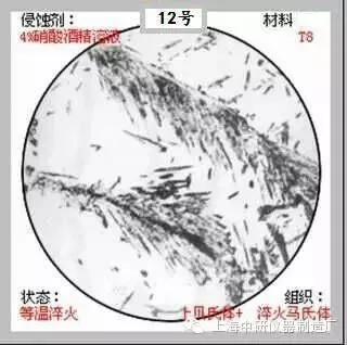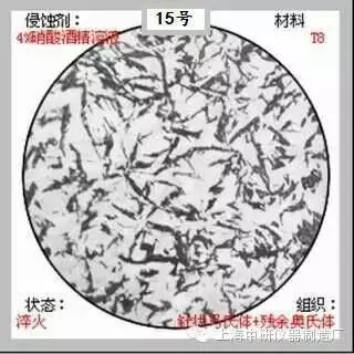 15、针状M+Ar。高碳M呈针状,互成一定的角度。