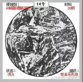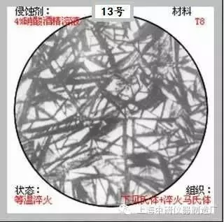 13、B下+M+A残。B下是呈扁片状的过饱和F分布在F内的短针状Fe3C的两相混合物。