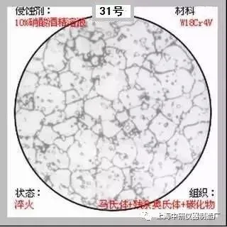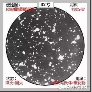 30、S+碳化物。基体为S,S呈暗黄色,白色块状为共晶碳化物,白色细小颗粒为二次碳化物。