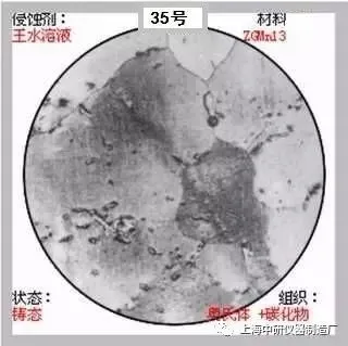 35、A+碳化物。白色基体为A,黑色网络为晶界,沿A晶析出颗粒状碳化物。