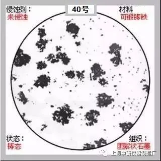 40、KT的石墨形态。黑色団絮状组织为石墨,类似棉絮,外形较为规则。