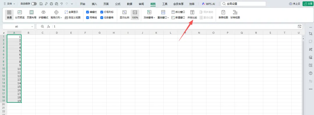 任意选中其中一个已打开的Excel表格,目光定位到顶部菜单栏,找到「视图」选项卡(位于「开始」「插入」选项卡右侧,位置显眼,容易查找)。点击「视图」选项卡后,在弹出的工具栏中,找到「并排比较」按钮并点击。