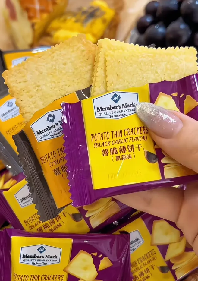 轻薄酥脆的解馋小能手,一口沦陷!饼干超薄超脆,咬下去 “咔嚓” 作响,比薯片还酥,完全不油腻。带着淡淡的薯香和蒜香,咸香入味,调味恰到好处,不会齁咸,每一口都超满足,追剧时根本停不下来。