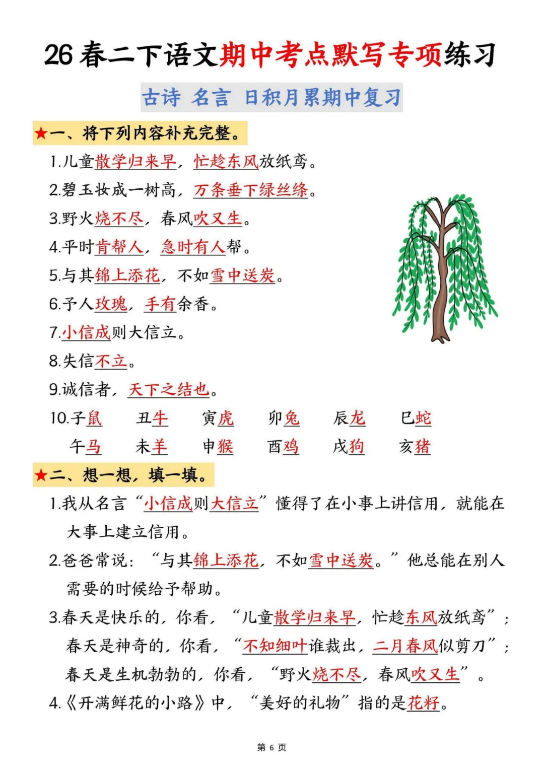 今天给大家分享的是:【26新二年级下册语文】【人教部编版】 期中冲刺考点默写专项练习带答案|完整高清电子版可打印
