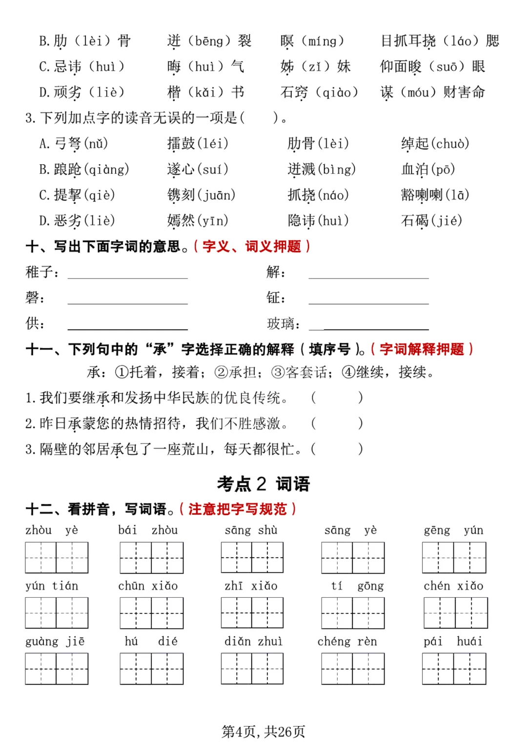 【26新五年级下册语文】【人教部编版】 期中冲刺考前复习专项带答案|完整高清可打印